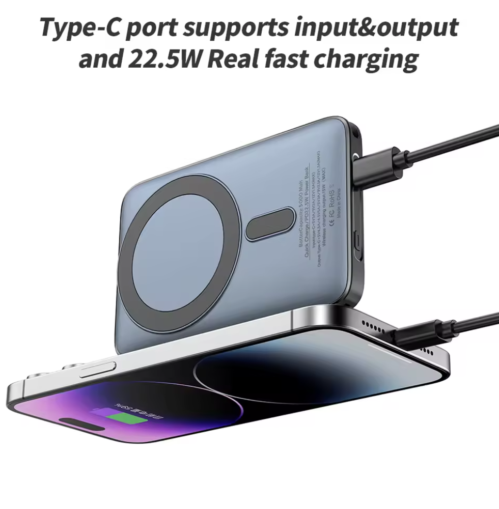 Magnetic Wireless Charging Power Bank PD 22.5W 5000mAh Built in Charging Cable With Ring Holder Mobile Phone Outdoor Powerbank